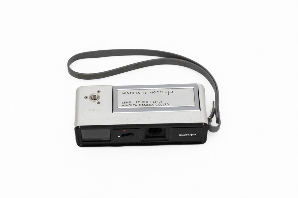 Después del éxito obtenido con las cámaras Konan, en 1956 Chiyoda sacó al mercado la Minolta 16 para cartuchos de película de 16 mm. que no se diferenciaba mucho de su predecesora. Era una cámara pequeña, muy compacta (obsérvese el tamaño en relación con una moneda de dos euros), que tomaba fotografias de 10 × 14 mm utilizando una lente Rokkor 1:3,5 F=25 mm, con aperturas de f/16, f/11, f/8, f/5,6, f/4 y f/3,5. El obturador, de carácter deslizante, permitía tres velocidades 1/25, 1/50, 1/200, sincronizado con flash.